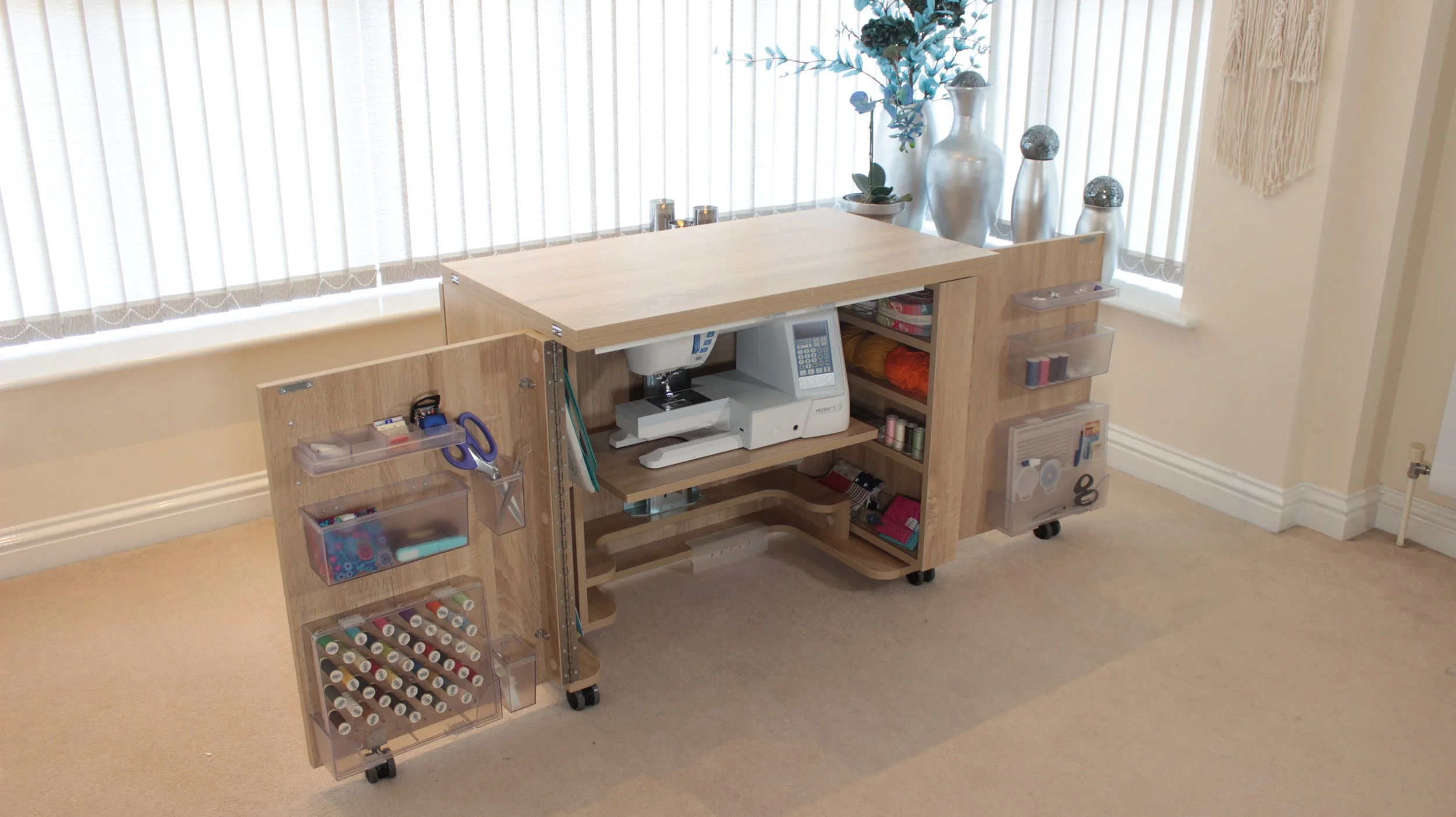 The most compact cabinet in our range which is fitted with our Maxi-lifter opening (type 1942) which is capable of taking virtually all domestic sewing machines on the market old or new!