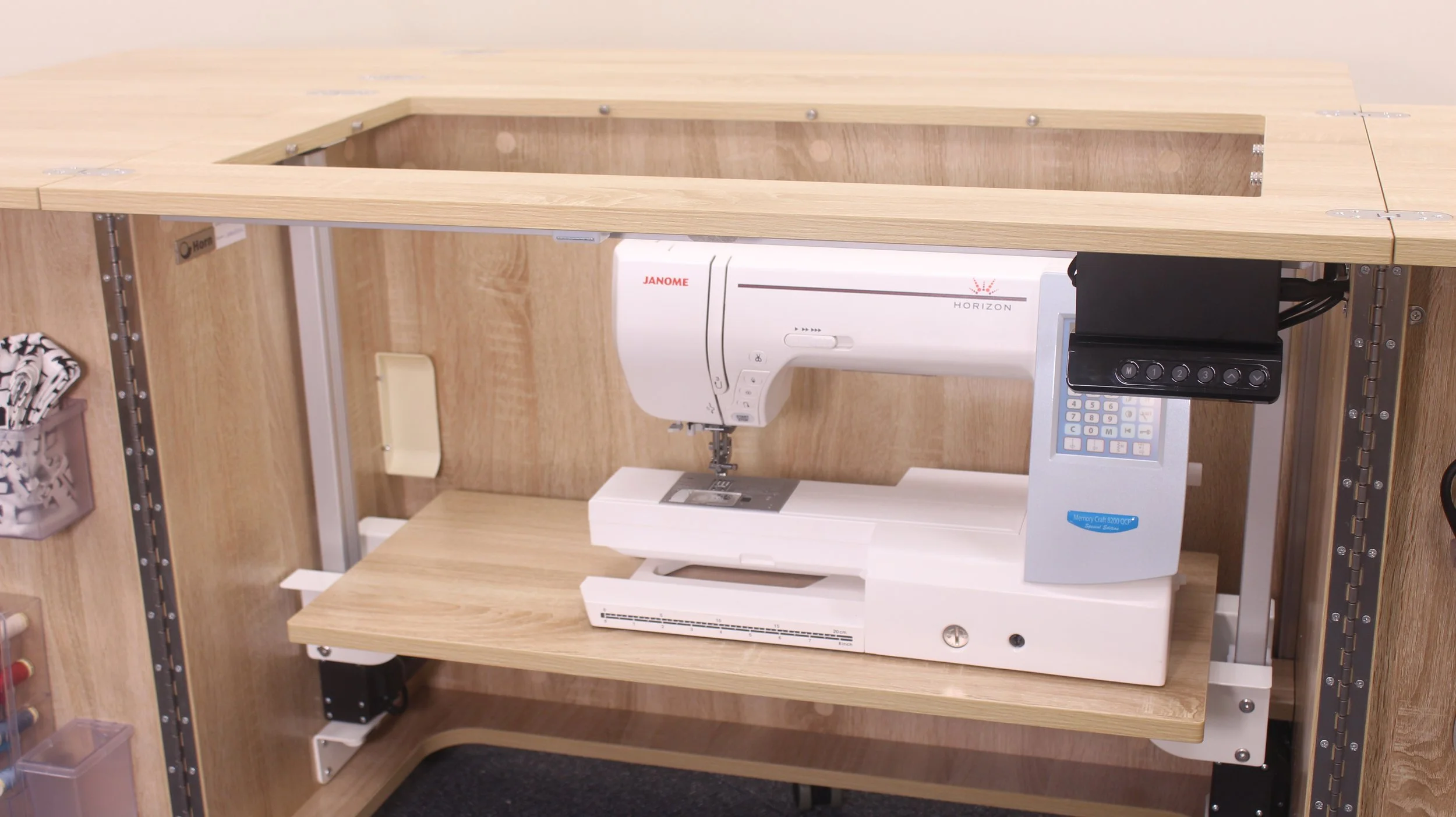New dual-motor electric lifter offers the ability to program 3 stopping positions of your choice whilst giving you the power to take the heaviest of domestic sewing machines with ease.